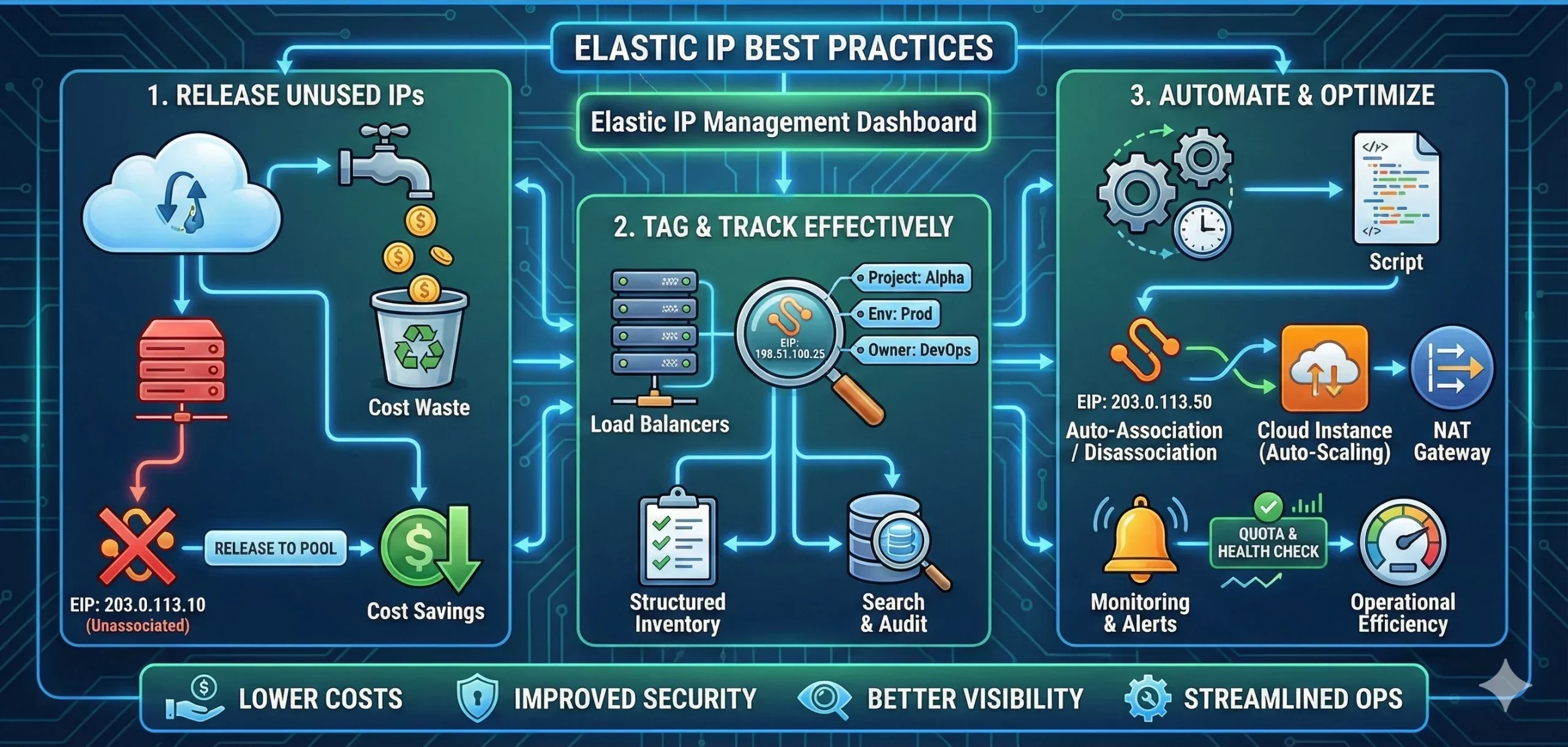 Elastic IP addresses (EIPs) are a crucial component of cloud networking, especially in Amazon Web Services (AWS). They provide a static, public IPv4 address that can be associated with an instance, ensuring reliability even if the instance is stopped and restarted. However, improper management of Elastic IPs can lead to security risks, unnecessary costs, and operational inefficiencies. This blog post outlines the best practices for effectively managing Elastic IPRead more